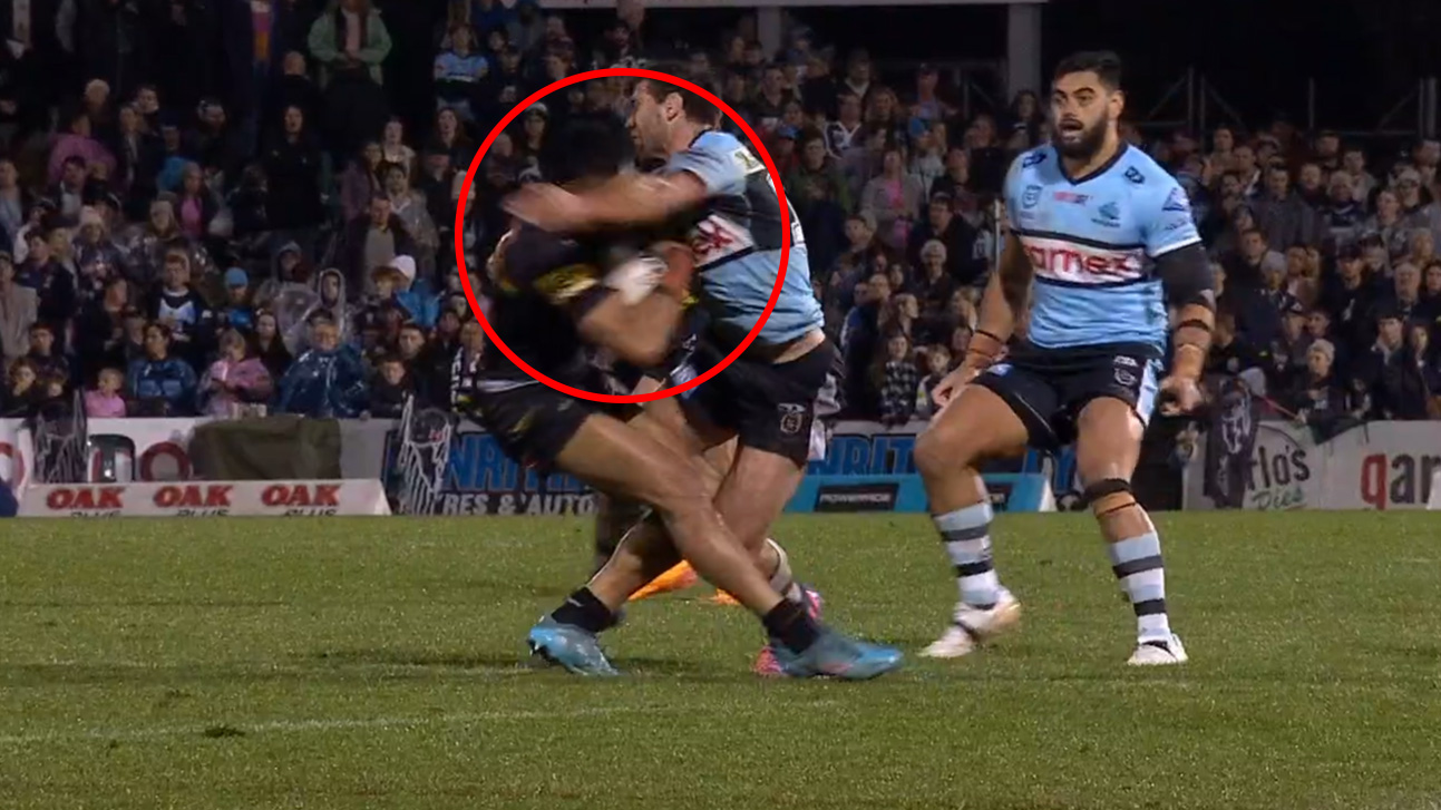 Finucane flew out of the Sharks’ line and failed to skip – the Panthers centre promptly hit the deck and was taken from the field for a HIA, but with only 10 minutes left, his night time was completed.